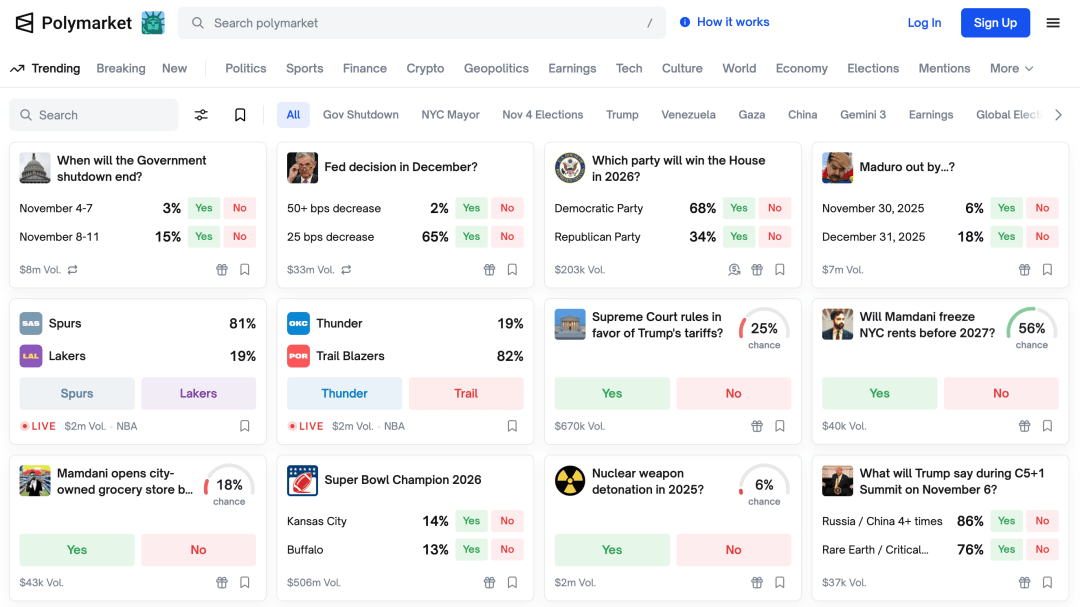 Polymarket 是一种预测市场(Prediction Market),用户通过买卖事件合约,表达自己对未来结果的判断。