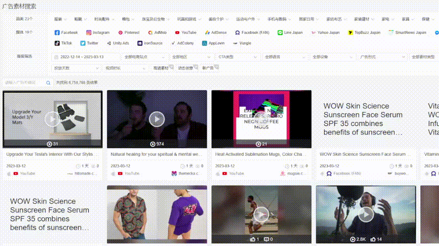 GoodsFox 提供千万量级广告素材库,并且支持查看110个细分类目,实时挖掘全类目及 Niche 行业爆款商品创意!