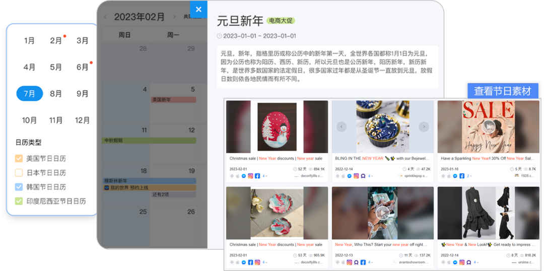 提供全球营销日历,通过聚合重点市场的营销热点及行业数据,帮助商家快速布局市场,营销提效。